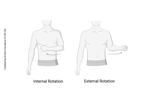 Some joints can also perform internal (medial) rotation and external (lateral) rotation. Internal rotation is a rotation towards the center of the body. External rotation is rotation away from the center of the body. These movements can be seen when looking at the movements at the shoulder joint.