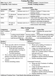Two conditioning goals should always be considered under the ‘Other Training Goals’ section. Additional training goals, if applicable, can also be added to this section.