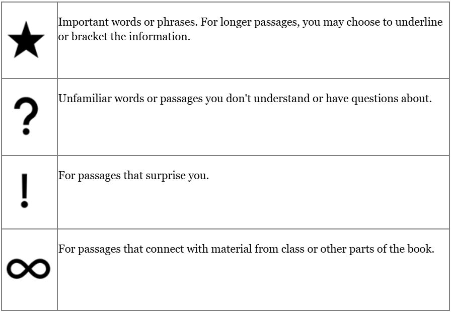 - Follow the instructions above to annotate the text. Select at least three specific symbols/strategies from the instructions to use.