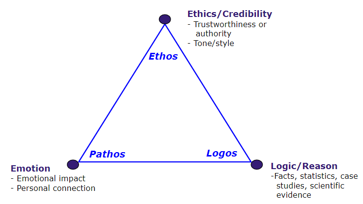 Figure 7.2.1 The Rhetorical Triangle: Ethos, Pathos, and Logos