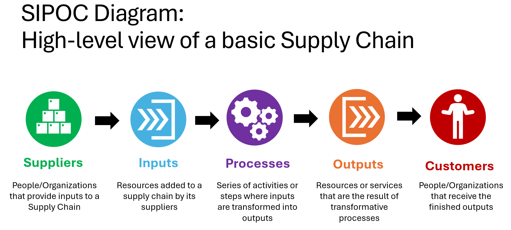 - Describe the components of a supply chain and identify its upstream and downstream components using the SIPOC framework