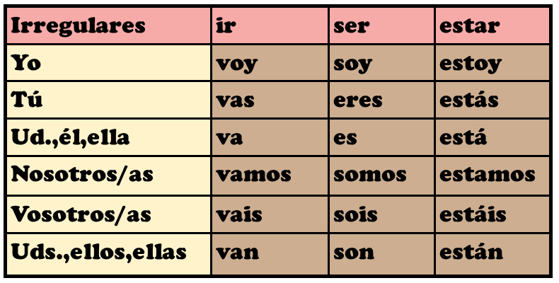 - totalmente Irregulares – ser, ir, estar