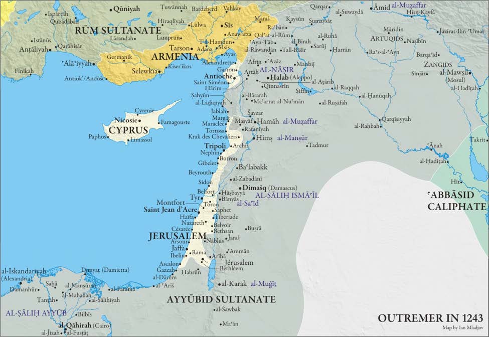 After the Third Crusade, the re-established Crusader States managed to survive and even expand in power for the next several decades. Syria and Egypt were split between Saladin’s heirs, and the crusader kingdoms often enjoyed good relations with Ayyubid Egypt: indeed, a truce worked out between Holy Roman Emperor Frederick II and the Egyptian sultan al-Kamil in 1229 resulted in the city of Jerusalem itself returning to Christian rule.